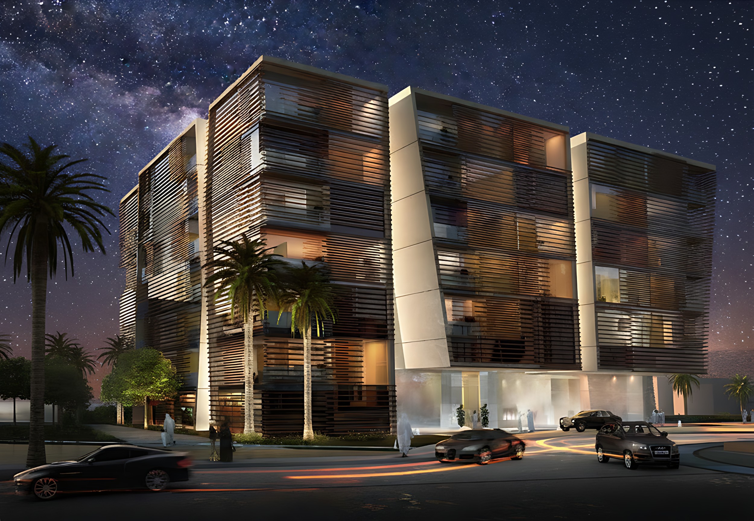 This five-star hotel is a G+5, 19,000-square-metre landmark within a prestigious TDIC masterplan in Abu Dhabi. The building is conceived as a deconstructed box, where two opposing corners are lifted to create a dramatic entrance and frame panoramic views for the signature rooftop restaurant. The volumes are further carved and shifted to introduce visual transparency, allowing guests to experience layered views through the building and toward key landmarks such as the Louvre Abu Dhabi and surrounding cultural icons.
