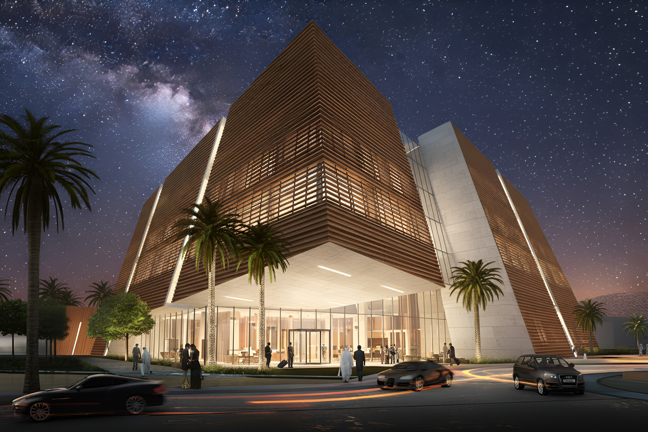 At the heart of the composition, a central “cube within a cube” houses the hotel’s main amenity spaces, creating a strong spatial and visual anchor. This interplay of solid and void transforms the structure into a sculptural form that feels simultaneously grounded and light. The result is an architecture that celebrates its setting, responding sensitively to context while asserting its own distinct identity within Abu Dhabi’s cultural landscape.